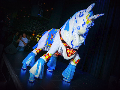 В нашем репертуаре - десятки постановок, в число которых входят спектакли, пантомима, танцевальные шоу и костюмированные представления. Театр легко узнаваем благодаря традиционным костюмам, уникальному дизайну масок и оригинальной драматургии, в которой искусно сочетаются музыка, танец и декорации. А использование светодиодных костюмов и спецэффектов, наполняет яркостью и фееричностью любое наше театральное шоу.